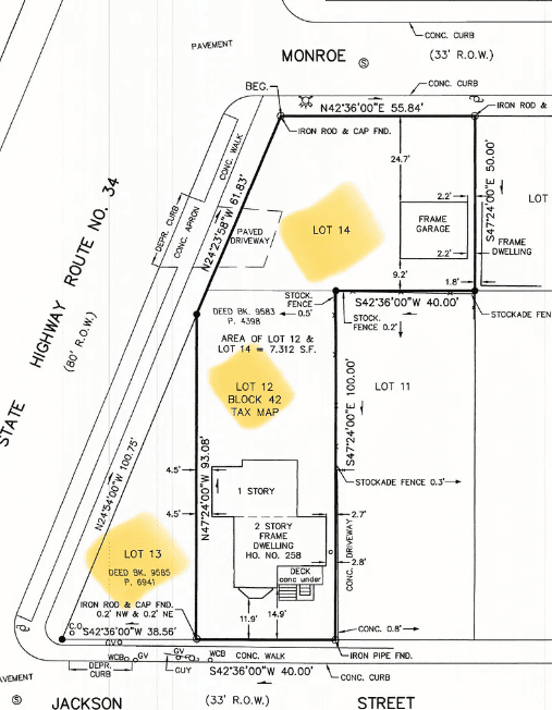 Please review the Pictures survey, which states three separate lots possible conforming a non-conforming buyer due diligence. Posible commercial development as well.